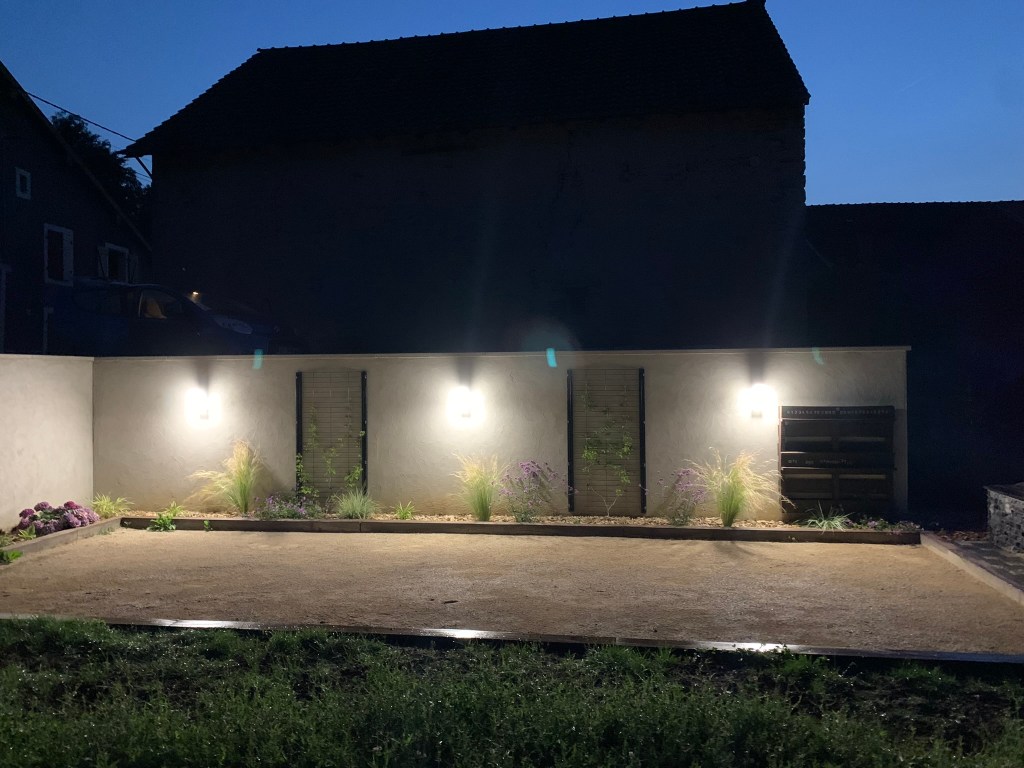 Nous avons réalisé ce projet pour répondre au besoin des propriétaires d’un gîte situé dans un petit village du Doubs. Ils souhaitaient offrir à leurs clients un espace ludique en créant un terrain de pétanque, un espace détente et un coin jeu pour les enfants. L’utilisation du bois et le choix des végétaux donnent un aspect champêtre qui se fond dans l’entourage. Certaines floraisons de couleurs pastel permettent de donner une touche de modernité.